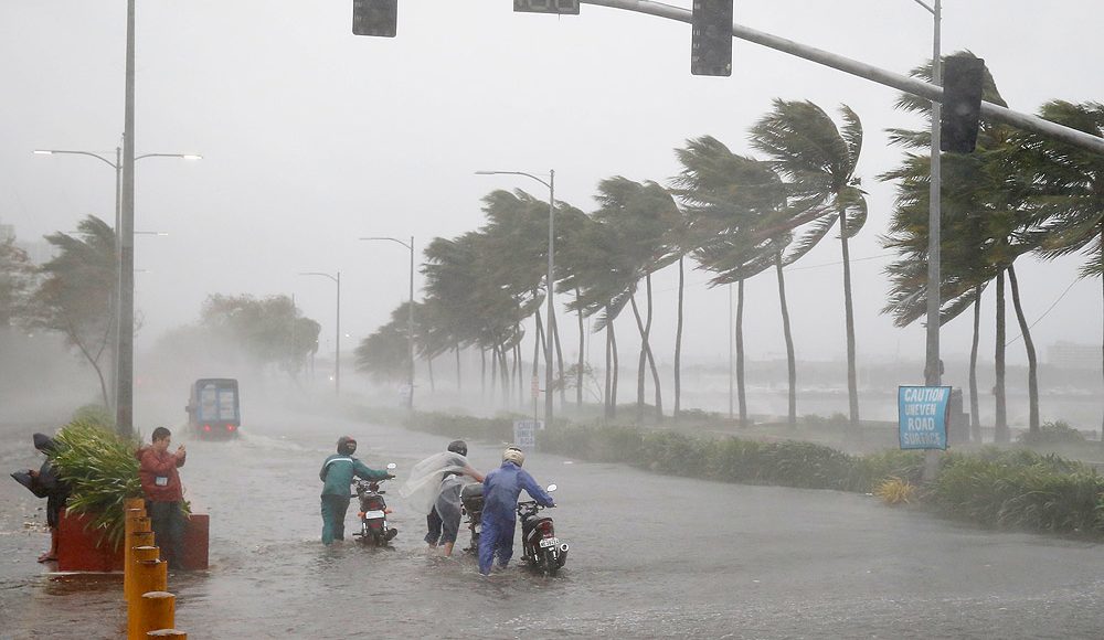 The storm was initially designated a “super typhoon”, but weakened slightly before landfall – when it still had winds of 187km/h (116mph).